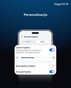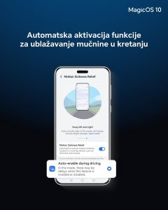 MagicOS 10 uvodi funkciju Motion Sickness Relief, koja se automatski aktivira tokom vožnje i pomaže u smanjenju vizuelne nelagodnosti, omogućavajući udobnije korišćenje uređaja u pokretu. Na polju bezbednosti, AI Deepfake Detection koristi inteligentnu analizu kako bi pomogla u prepoznavanju potencijalno manipulisanih medija i zaštitila korisnike u situacijama kao što su video sastanci ili deljenje sadržaja. Kada je reč o zvuku, MagicOS 10 donosi podršku za Bluetooth formate visoke rezolucije, pružajući bogatiji i detaljniji zvuk pri povezivanju sa kompatibilnim slušalicama