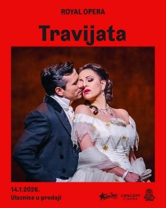 Čuvena Verdijeva opera „Travijata“ u izvođenju Kraljevske opere i baleta (Royal Ballet & Opera) prikazuje se uživo iz Londona 14.1.2026. u 19.45h u bioskopima u Srbiji: Concept Cinema u Beogradu i CineStar u Novom Sadu.